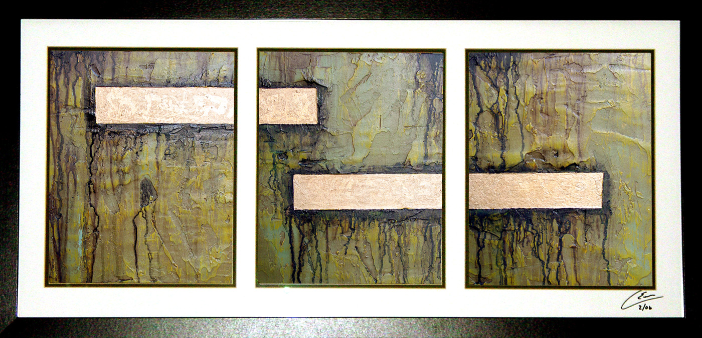 triptych layout of acrylic, vinyl texture on 11"x 14" canvas