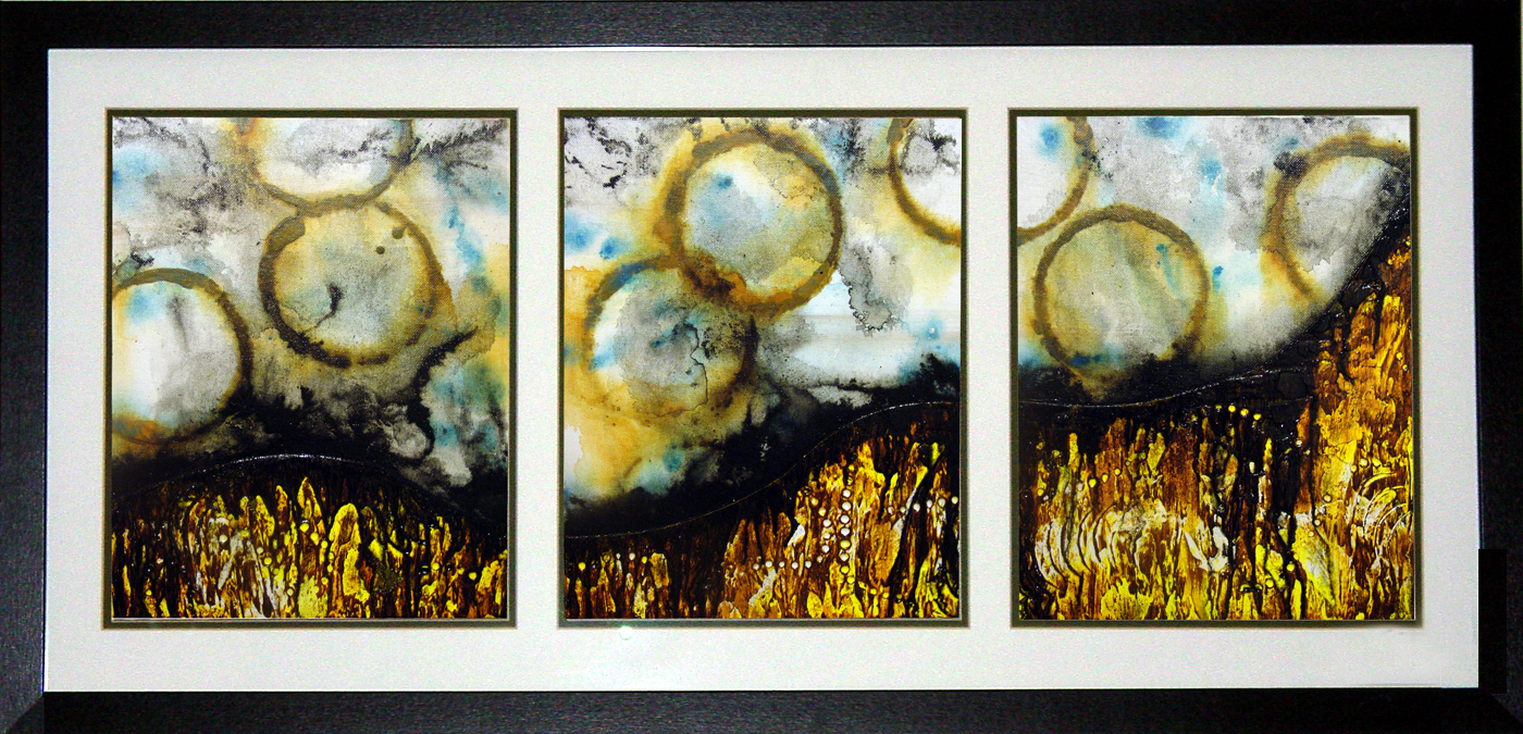 triptych layout of acrylic, vinyl texture on 11"x 14" canvas