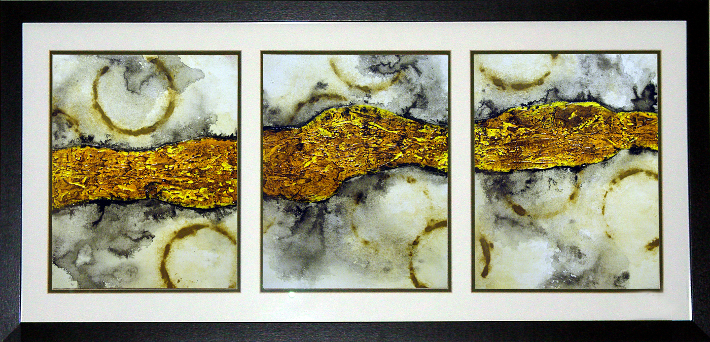 triptych layout of acrylic, vinyl texture on 11"x 14" canvas